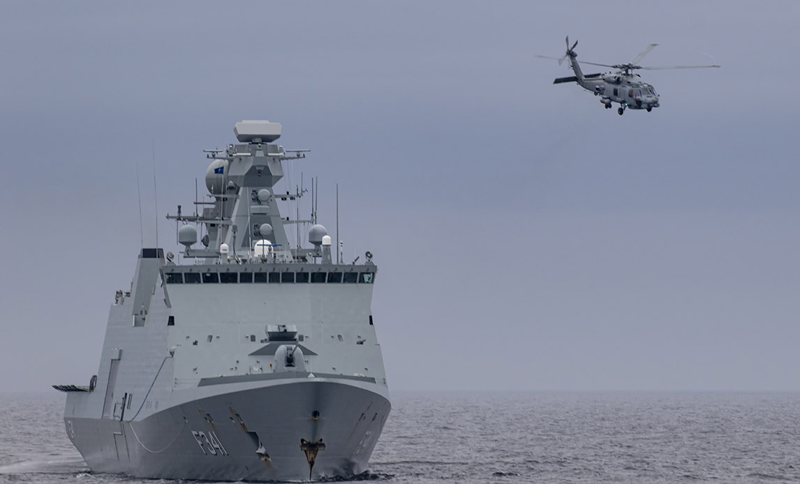 Fregatten Absalon med Seahawk-helikopter. Foto: Forsvaret.